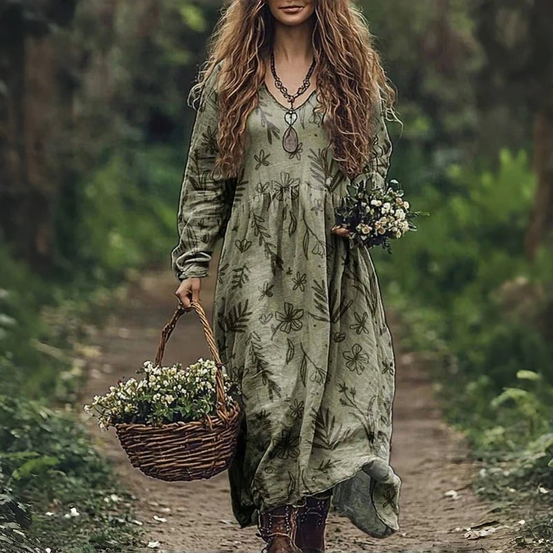 Vintage Floral Print Dress
