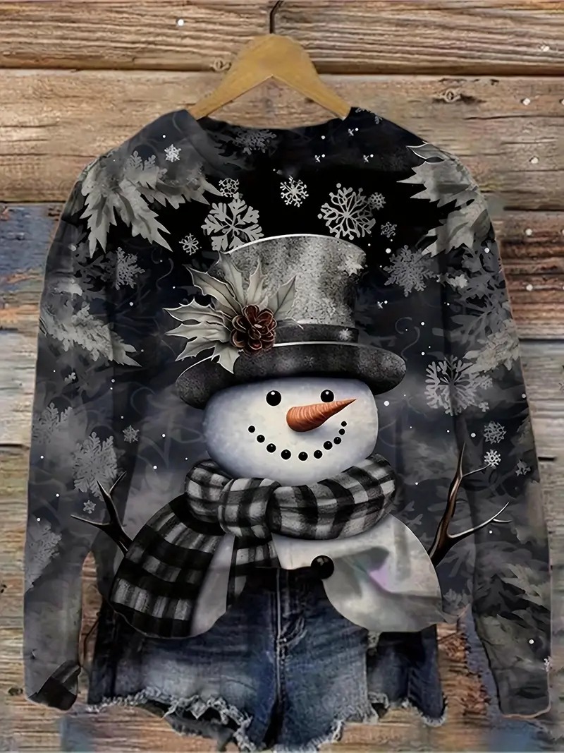 Women's Casual Snowman Print Sweatshirt
