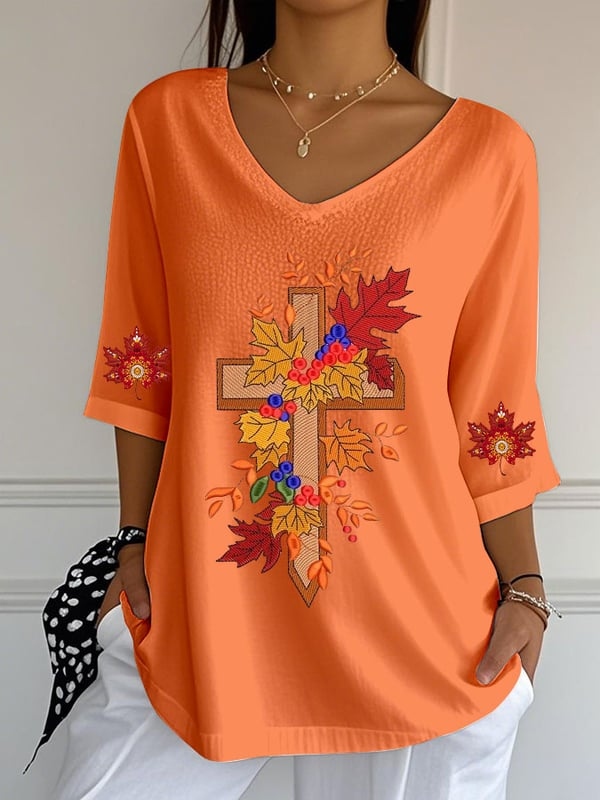 Women's Casual Autumn Print Sleeve Top