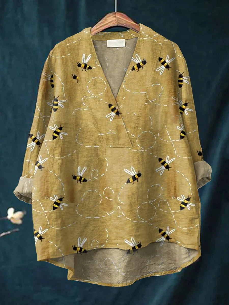 Women's Funny Bee Art Print Casual V-neck Shirt