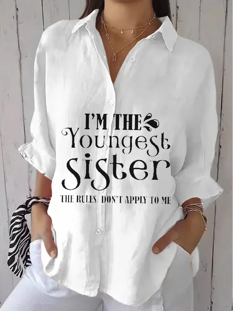 Women's Youngest Sister Loose Lettering V-Neck Shirt